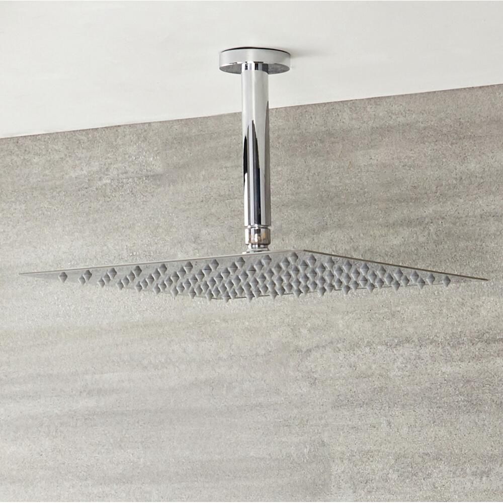 Enhance your modern bathroom and add a touch of designer style with the Milano Arvo 400mm square rain shower head, complete with brass ceiling-mounted arm.